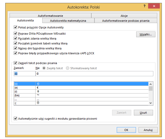 A do większych stałych fragmentów pism czy maili lepiej nadaje się funkcja „Szybkie części„. O niej przy innej okazji.