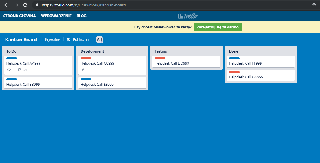 Fascynacja kanbanem jakiś czas temu popchnęła mnie do bliższej znajomości z tym narzędziem. Świetnie się nadaje do zrobienia tablicy kanbanowej dzielonej czy to z własnym zespołem, czy z klientem. To znowu nie jest mój pomysł – jeden klient nas wciągnął do paru projektów na swojej tablicy, pokazał jak działa… i się przyjęło.