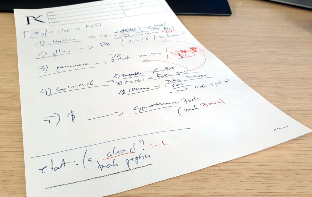 i np. równolegle robi sobie jakieś notatki. Poniżej moje, żeby to jakoś uprościć, usystematyzować i móc zreferować (no i żeby mnie nie wygonili ze spotkania, jak zobaczą, że mam więcej niż jedną kartkę 😉