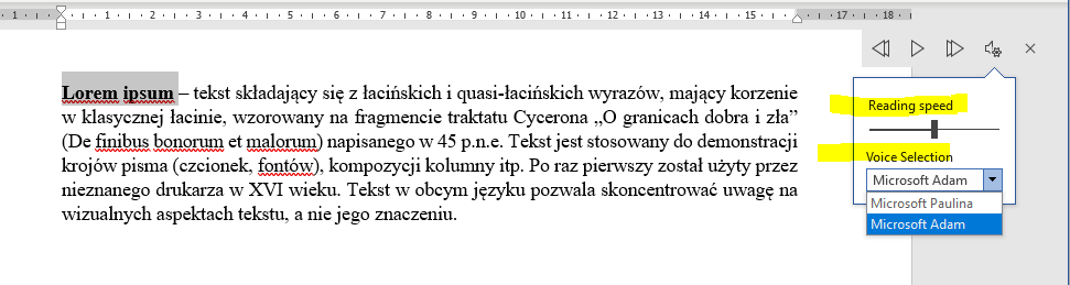 W pierwszej chwili trochę się zdziwiłem, jak mi nagle z głośnika komputerowy głos zaczął czytać tekst, który właśnie pisałem, ale jak mi komputer przeczytał na głos słowo „pełnomonictwa„, to doznałem małego olśnienia. Jeśli tekst musi być 100% dobrze – i mamy czas – to można w ten sposób uważam wyłapać absolutnie wszystkie literówki i proste błędy, a nawet błędy ortograficzne. Od razu sobie przypomniałem, ile to razy siedząc na akcie notarialnym podczas głośnego odczytywania notariusz wychwycił jeszcze parę literówek. Nawet jak niektórych błędów potrafimy sami nie widzieć, to je usłyszymy, jeśli tekst odczyta nam automat (komputer zawsze przeczyta, to co ma napisane, a nie, to co chcemy widzieć).