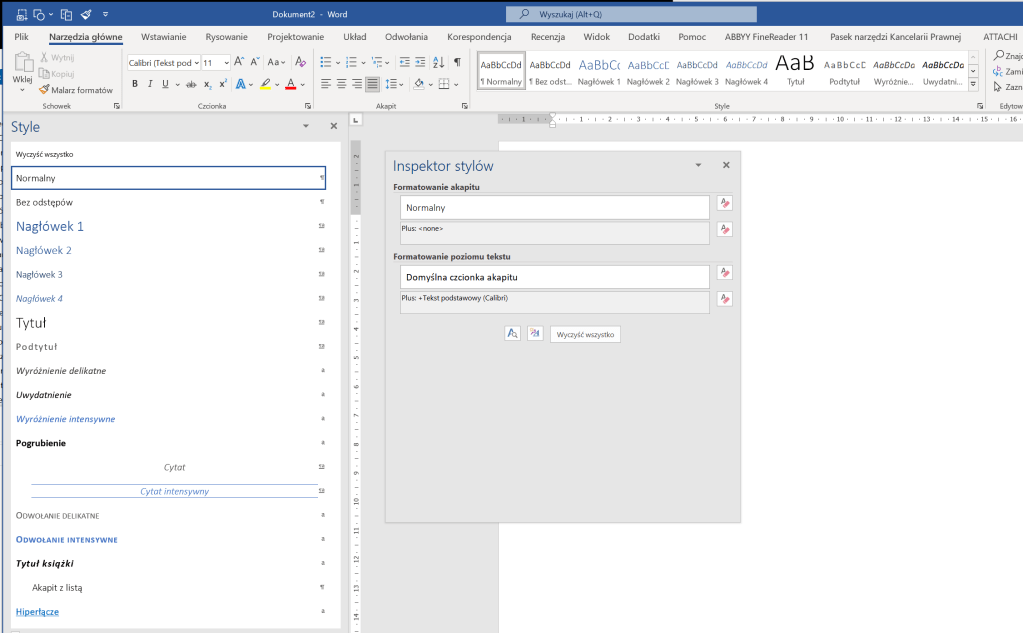 Jeśli w Wordzie nie mamy ustawionych własnych styli bazowych, to czysty, nowy dokument po otwarciu programu najczęściej ma takie style: