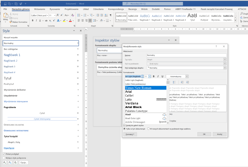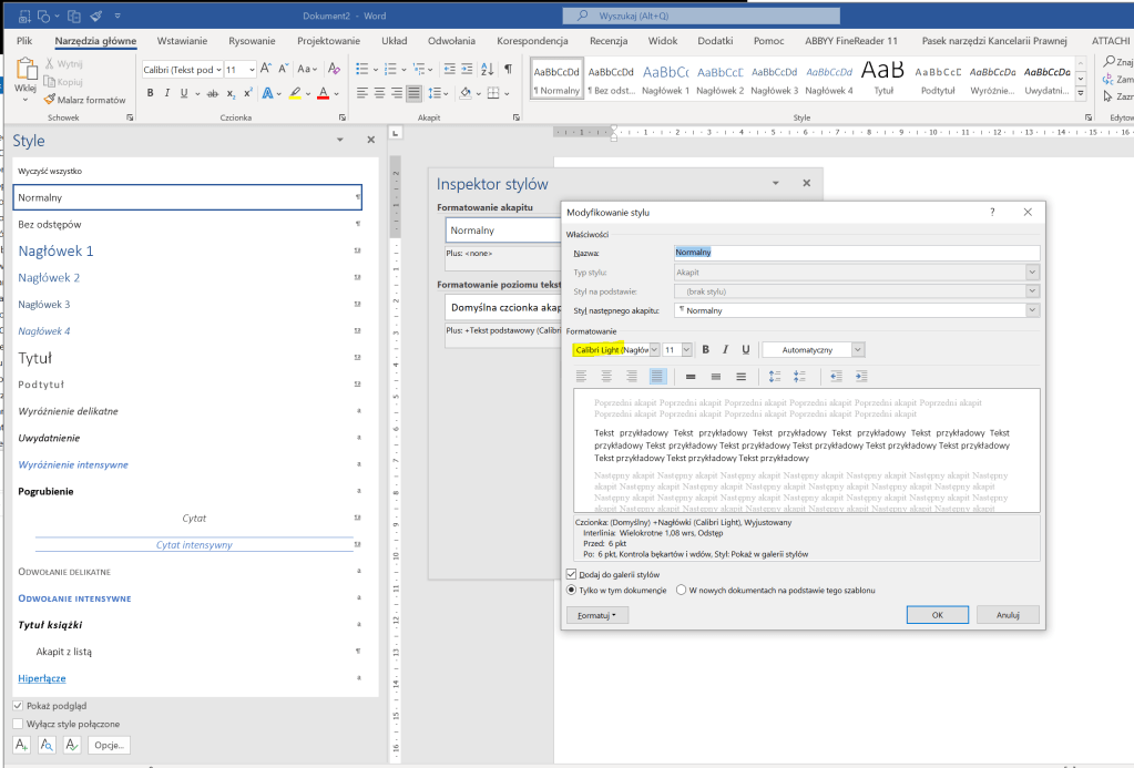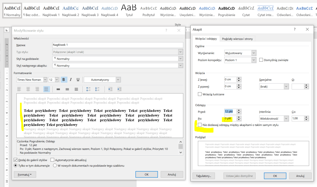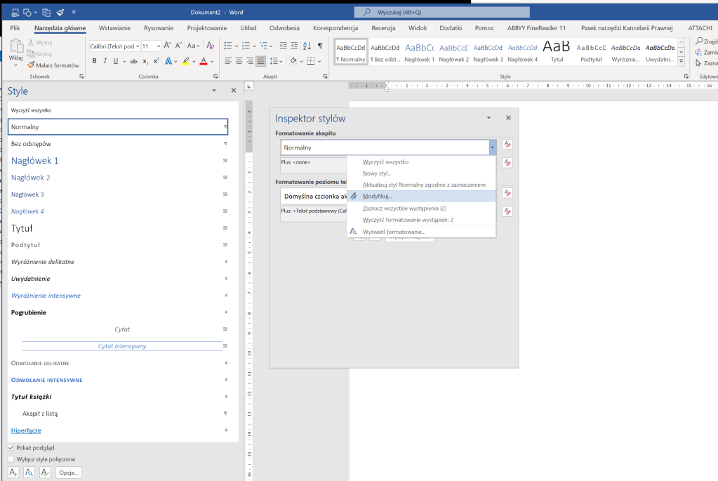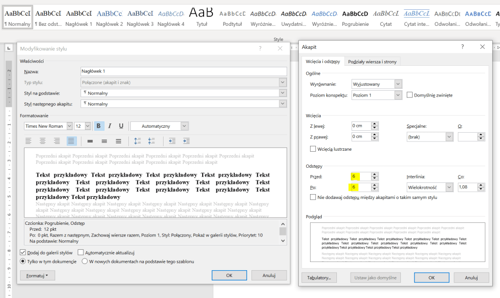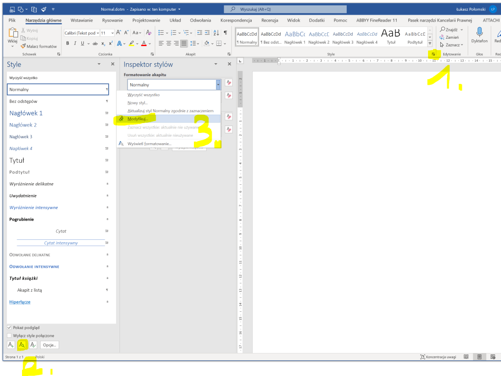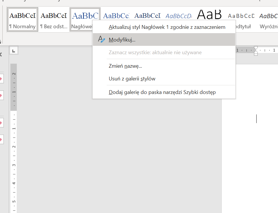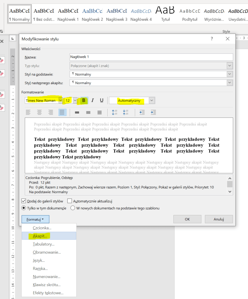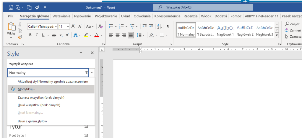To samo, co zrobiliśmy ze stylem „Normalny”, robimy ze stylem „Nagłówek 1”