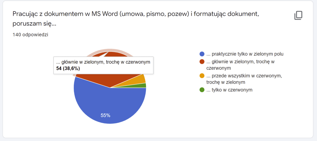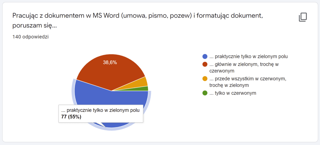 Jeśli zdarza mi się prowadzić szkolenie z cyklu Word dla prawników i chciałbym poznać na jakim poziomie obsługi Worda są uczestnicy, to lubię np. w ramach poznania się poprosić o przeklikanie np. takiej ankiety – z aż jednym pytaniem: